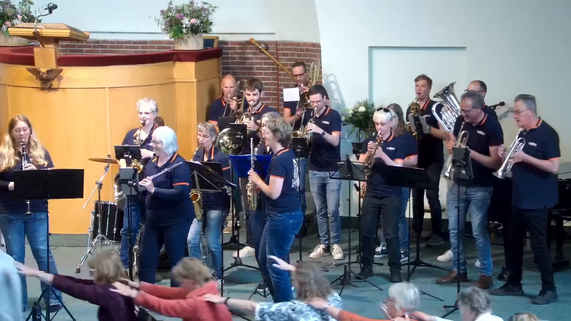 En dan word je gebeld door de Bethelkerk. Ter ere van het 100 jarig bestaan van de kerk wilde de organisatie graag een vrolijke noot toevoegen aan deze feestelijke dag. U weet, daar zijn we prima voor te porren dus, na goed het repertoire doorgesproken te hebben met de organisatie, stonden wij op het podium. De mensen moesten even wennen maar al vrij snel kwamen de voetjes van de vloer en werd, aangevoerd door de dominee, een polonaise van jawelste gevormd!